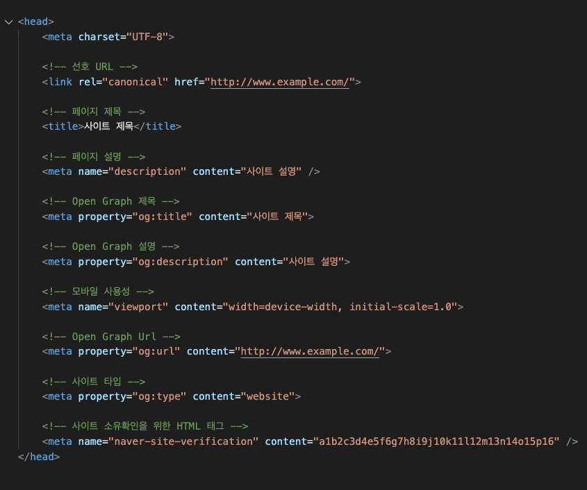 <meta name="description" content="사이트 설명" />