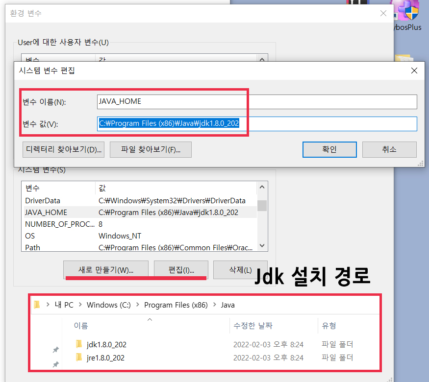 등록 과정을 자세하게 보면 최종 목적은 시스템 변수 'Path'에 jdk가 설치된 폴더에서 하나 더 들어간 bin 디렉터리를 등록하는 것입니다.