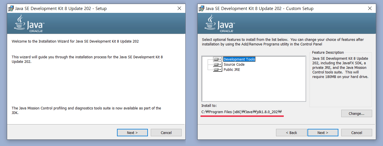 다운로드한 'jdk-8u202-windows-i586.exe' 파일 설치를 진행합니다.