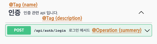 @Tag(name = "인증", description = "인증 관련 api 입니다.")