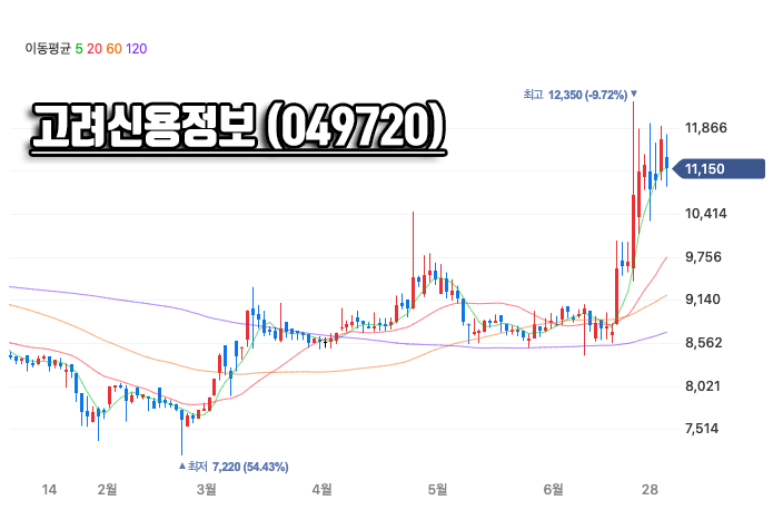 이러한 가운데 고려신용정보는 올초 대비 주가가 30%나 올랐으며, 최근 52주 신고가를 경신하면서 시장의 주목을 받고 있는데요.