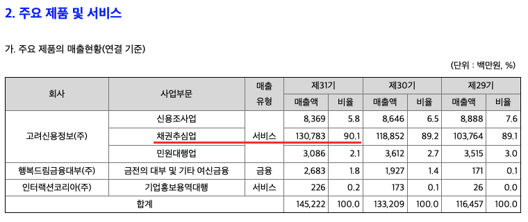 이처럼 허가제로 운영되는 채권추심업은 2019년 총 23개의 업체에서, 2022년 현재도 총 23개의 업체로 추가적인 허가가 나지 않고 있는 상태인데요. 고려신용정보는 23개의 업체 중에서도 1위 자리를 차지하고 있는 기업입니다.