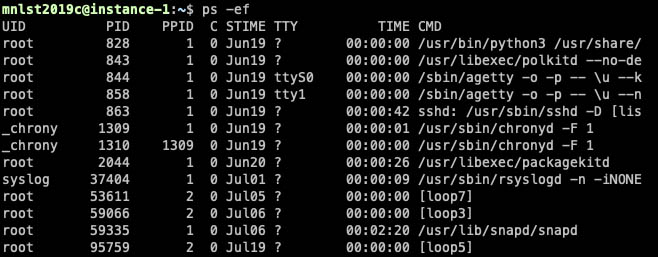 데몬은 백그라운드 프로세스에 속하기 때문에 백그라운드 프로세스와 마찬가지로 TTY(터미널 장치)를 가지고 있지 않으며, 추가로 PPID(parent id)가 1이고, SID(session id) 역시 자신의 아이디와 같다는 특징이 있습니다.