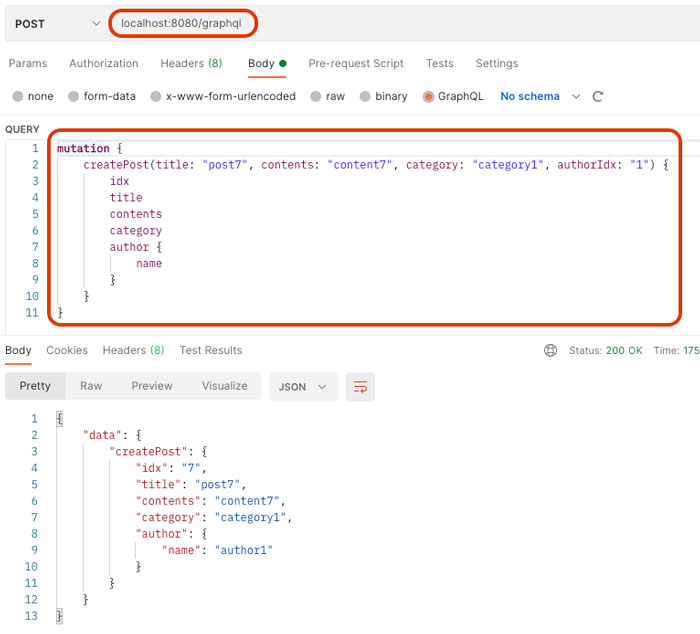 createPost(title: String!, contents: String!, category: String, authorIdx: ID!) : Post