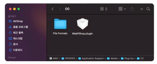 설치 경로 -> /Library/Application Support/Adobe/Plug-Ins/CC