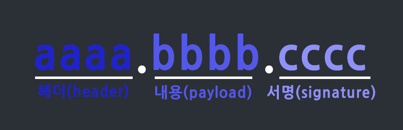 JWT는 헤더(Header), 페이로드(Payload), 서명(Signature) 세 부분을 ' . ' 으로 구분하는 구조입니다.