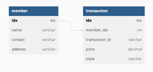 (예시로 사용된 member, transaction 테이블 구조는 테스트용으로 간단하게 넣어본 거라 참고만 해주시면 될 것 같습니다.)