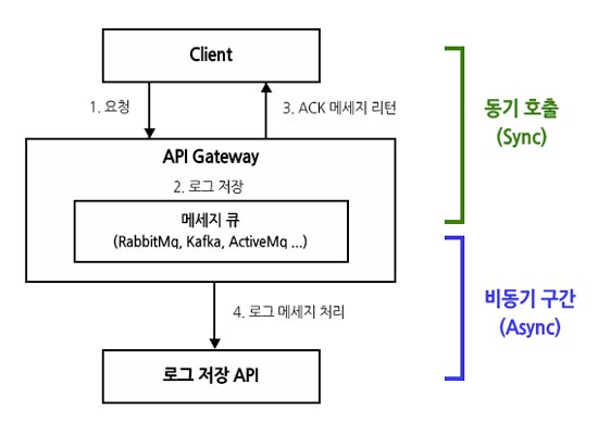 메세지 호출 패턴은 동기(Sync), 비동기(Async)와 같은 API를 호출하는 메세지 패턴을 정의하는 것인데, API Gateway를 이용하면 아래와 같이 동기 호출을 비동기 호출로 바꿀 수도 있습니다.