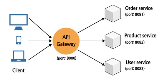 클라이언트는 각 서비스의 엔드포인트 대신 API Gateway로 요청을 보내게 되며, 요청을 받은 API Gateway는 설정에 따라 각 엔드포인트로 클라이언트를 대신하여 요청하고, 응답을 받으면 다시 클라이언트에게 전달하는 프록시(proxy) 역할을 합니다.