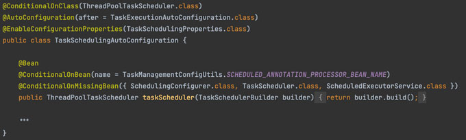 위 내용을 조금 더 자세하게 알아보기 위해 스케줄러가 동작되기 위한 클래스들이 bean 등록되는 과정을 살펴보겠습니다.
