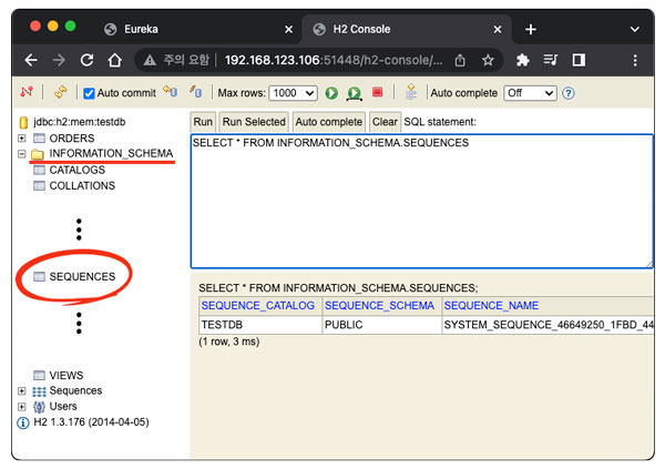 여기서 찾고 있는 information_schema의 'SEQUENCES' 테이블이 어디에 있는 것인지 찾아보면, 바로 h2 Database의 기본 구성 테이블에서 찾을 수 있었는데요.