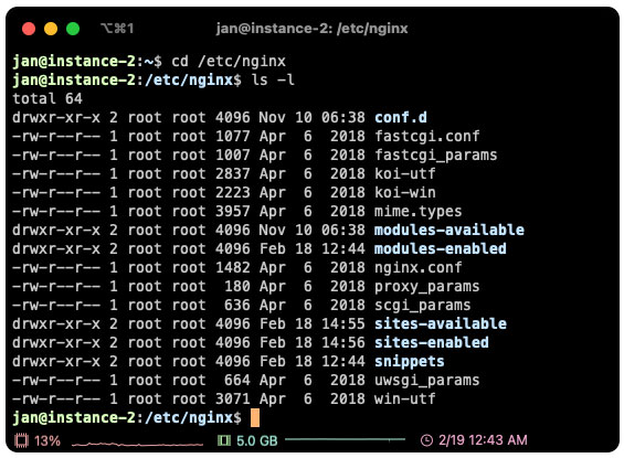 이어서 /etc/nginx 디렉터리 내부를 살펴보면 nginx 관련 여러 폴더 및 파일들이 존재하는 것을 볼 수 있는데요.