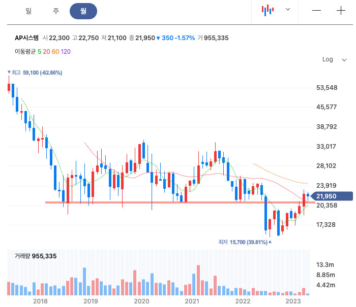 작년부터 AP시스템 주가 저평가에 대한 이야기가 나오기 시작하였고, 현재 주가는 최저가인 15,700원 대비 약 40% 정도 상승하였는데요.