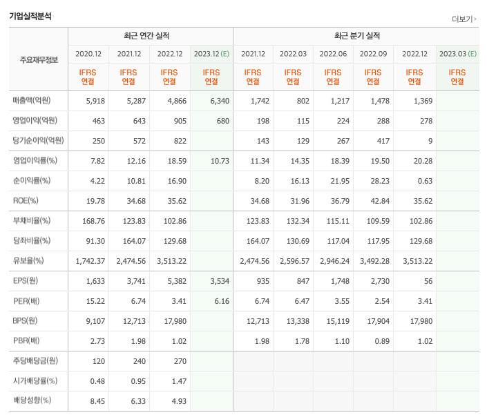개인적으로는 3천 억 대의 시가총액 대비 매출 및 영업이익이 좋아 보이는데요.