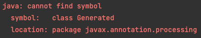 querydsl 사용 중 Q클래스를 생성한 뒤 프로그램을 실행했을 때 'javax.annotation.processing 패키지에서 Generated class를 찾지 못한다는 오류'가 발생했습니다.