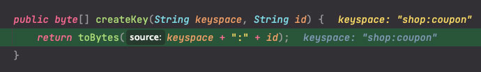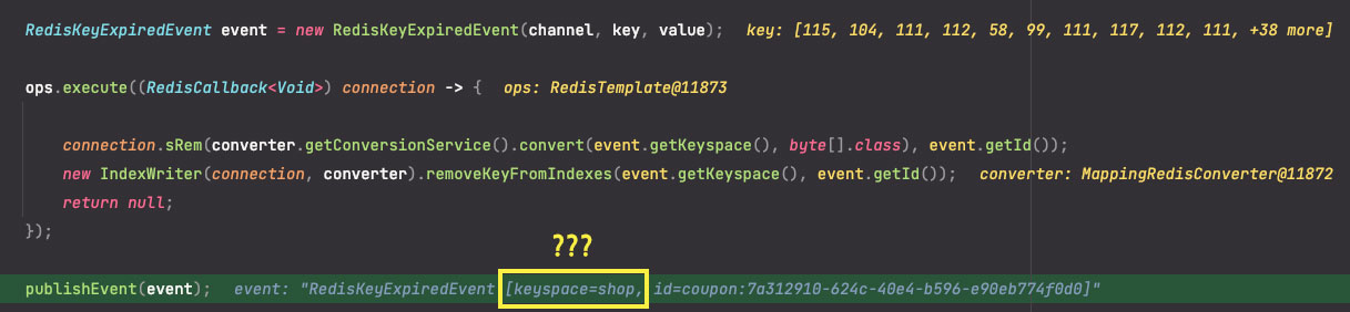 *분명 위 creatKey() 메서드에서는 keyspace가 'shop:coupon'이었는데, 여기서는 'shop'으로 잡히고 있습니다.