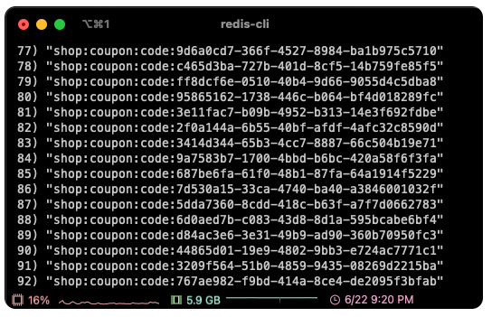 redis에 데이터를 넣을 때는(위에서 살펴본 put method) 'shop:coupon'이라는 keyspace를 통해 데이터를 넣었지만, secondary index를 삭제하기 위한 RedisKeyExpiredEvent를 생성할 때는(onMessage method) 앞에 있는 DELIMITER ':'를 기준으로 keyspace를 잘라냈기 때문에 'shop'이라는 keyspace로 redis에 secondary index 및 set 삭제 요청을 보내게 되고 keyspace가 다르기 때문에 데이터가 삭제되지 않고 계속 남아있던 것입니다.