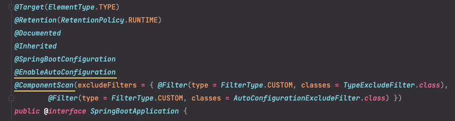 실제 코드상에서의 자동 구성(auto configuration)은 @SpringBootApplication 어노테이션에서 부터 시작되는데요.