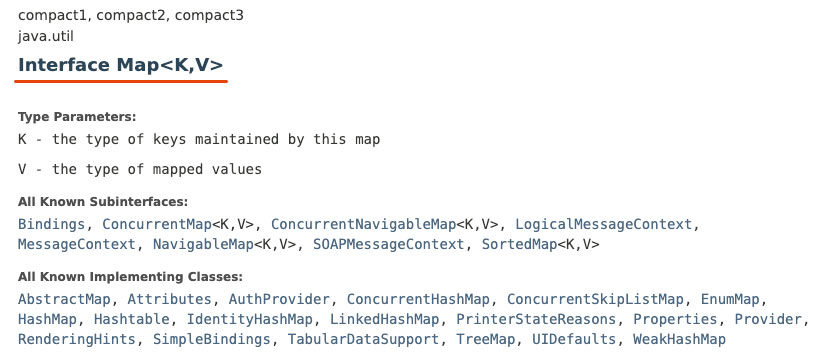 구현체 중 가장 많이 사용되는 클래스는 HashMap<K, V>이며, 순서가 필요한 경우 입력된 순서대로 데이터가 출력되는 LinkedHashMap, 입력된 key의 sort 순서로 데이터가 정렬되는 TreeMap 등이 있습니다.