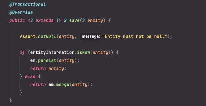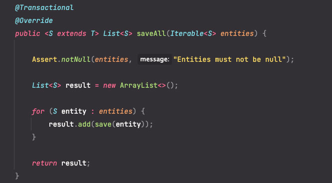 앞서 말한 것처럼 saveAll() 메서드는 내부적으로 반복문을 통해 save() 메서드를 호출하고 있는 것을 볼 수 있었습니다.
