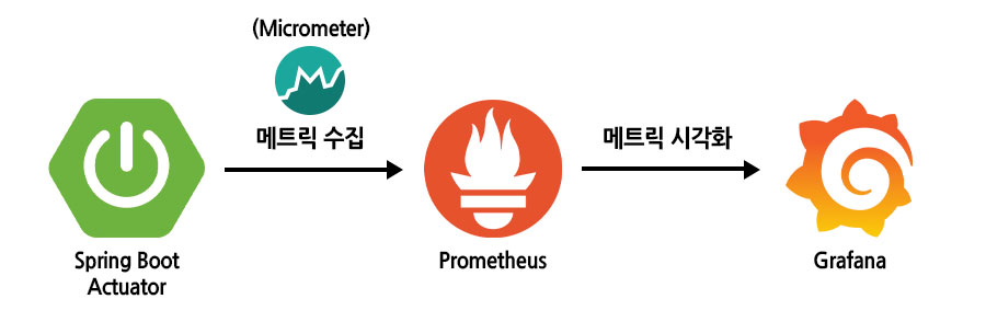 (actuator와 prometheus 사이에 micrometor 라이브러리를 통해 prometheus에 맞는 메트릭이 전달됩니다.)