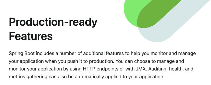 spring 공식 문서의 설명처럼 스프링 부트에는 spring-boot-actuator 모듈을 통해 애플리케이션을 모니터링하고 관리하는 데 도움이 되는 다양한 기능(애플리케이션 상태, 환경, 메트릭 등)을 제공하며, HTTP endpoints 또는 JMX를 통해 상호 작용 할 수 있습니다.