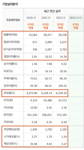 실적이 증가하고 유보율이 높아지는 반면, 배당이나 주주환원에 대해서는 자산가치 대비 만족스럽지 않은 것 같은데요.