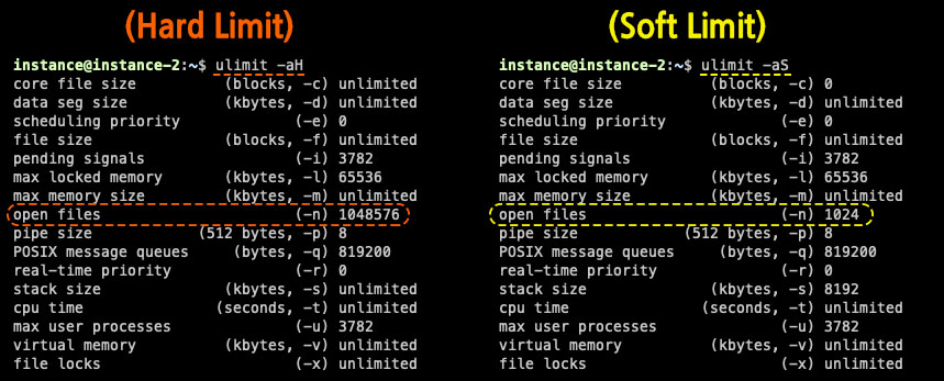 따라서 Too many open files가 발생하는 경우, 프로세스에 기본적으로 할당된 Hard Limit를 초과했다고 볼 수 있는데요.
