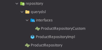 크게 JpaRepository를 extends 하는 Repository 인터페이스에 CustomRepository 인터페이스를 추가로 extends 하는데, CustomRepository 인터페이스는 Querydsl의 기능을 사용하는 RepositoryImpl 클래스를 구현체로 가지고 있습니다.