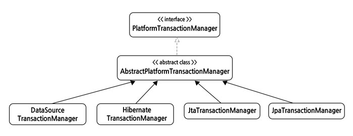 플랫폼마다 상이한 TranscationManager들과 애플리케이션들이 상호작용 할 수 있는 인터페이스가 정의되어 있습니다.