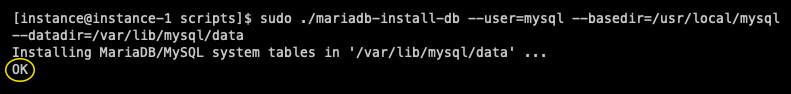위 명령어와 같이 mariadb_install_db 파일로 mariadb를 설치합니다.