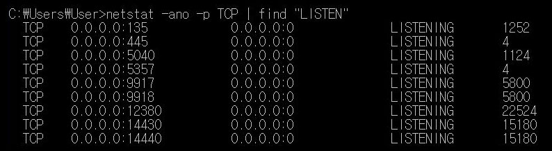 Process ps = new ProcessBuilder("cmd", "/c", "netstat -ano -p TCP | find \"LISTEN\"").start();
