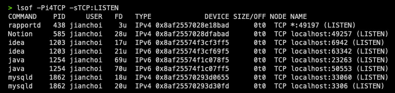 * 여기서 'lsof -Pi4TCP -sTCP:LISTEN' 명령어를 사용했지만, 기능에 따라 필요한 명령어를 사용하고 'readLine()'을 통해 얻은 line에 대한 처리를 하도록 유연하게 사용할 수 있습니다.