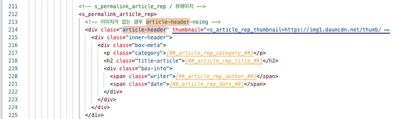 "article-header" 부분을 검색하면 위 코드와 같은 부분이 3곳이 나오게 됩니다.