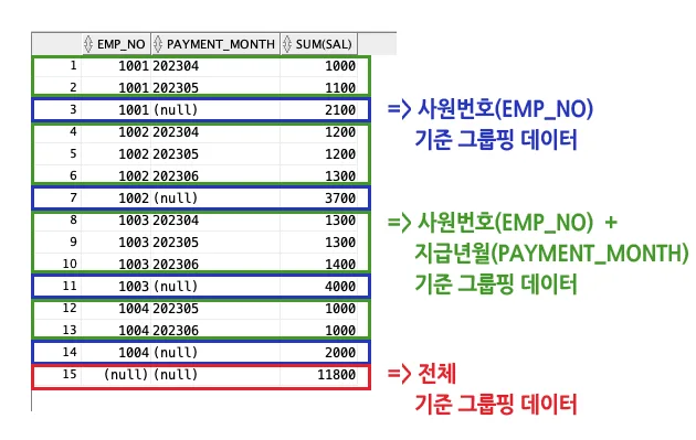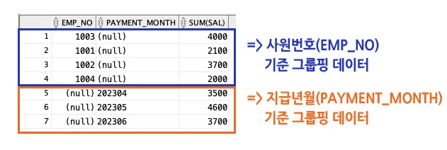 GROUP BY ROLLUP(EMP_NO, PAYMENT_MONTH);