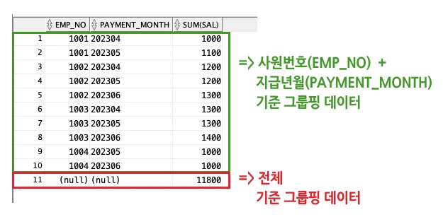 GROUP BY ROLLUP((EMP_NO, PAYMENT_MONTH));