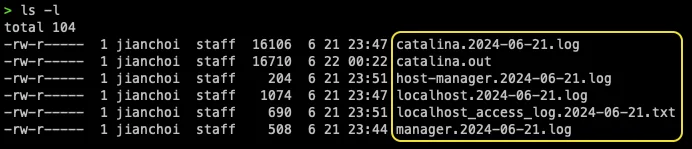 최근 외장 톰캣에 프로젝트를 배포하고 운영화는 과정에서 톰캣 인스턴스의 /logs 디렉터리 하위에 여러 개의 로그 파일이 생기는 것을 확인하였는데요.