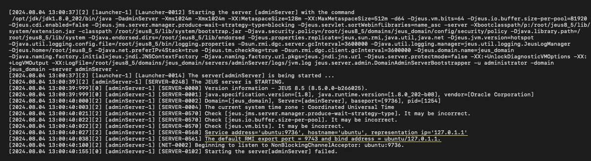 해당 문제는 ubnutu(20.04.6 LTS) 환경에서 jeus(8.5)를 설치하여 adminServer를 실행하는 과정에서 발생한 문제입니다.