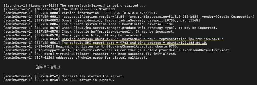 로그를 살펴보면 JEUS server를 실행하는 과정에서 hostname ubuntu에 대한 ip로 '127.0.1.1'을 가져오는 것을 확인할 수 있는데요.