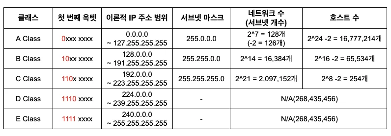 각 클래스는 고정된 서브넷 마스크로 인해 네트워크 영역과 호스트 영역의 크기가 지정되어 있기 때문에, 위에서 살펴본 예시처럼 IP 주소가 낭비 발생할 수 있다는 문제가 있습니다.