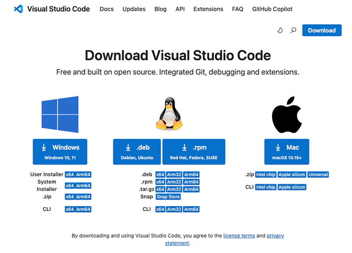 (Visual Studio가 전체 개발 환경 IDE인 반면, VSCode는 경량 코드 편집기로 볼 수 있습니다.)
