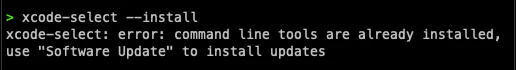 (이미 설치된 경우 위 이미지와 같이 'command line tools are already installed' 메시지를 확인할 수 있습니다.)