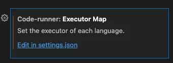 Executor Map은 각 언어에 대한 실행 명령어를 설정할 수 있는 부분으로 'Edit in setting.json' 부분을 통해 json 파일을 수정해야 합니다.