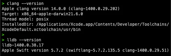 clang과 lldb는 'Xcode Command Line Tools'에 포함되어 있기 때문에 혹시나 설치가 되어 있지 않은 경우 Xcode Command Line Tools를 설치하면 됩니다.