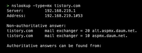 해당 도메인에 대한 메일 교환 서버(Mail eXchanger) 정보를 반환합니다.