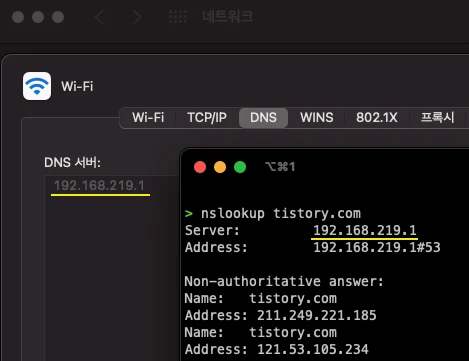 2. 특정 DNS 서버를 지정하여 조회하는 방법