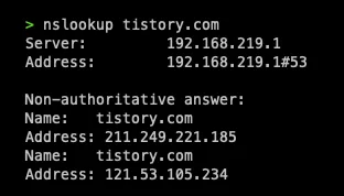 도메인을 통해 IP를 조회하는 가장 기본적인 방식입니다.