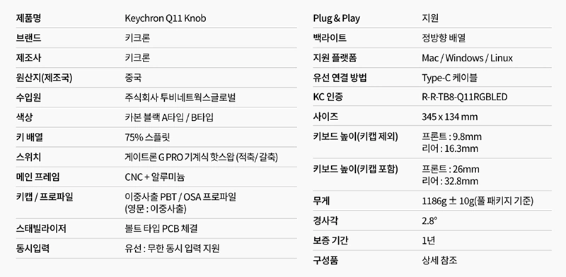 | 모델명 | Keychron Q11 Knob | Mistel MD770 |