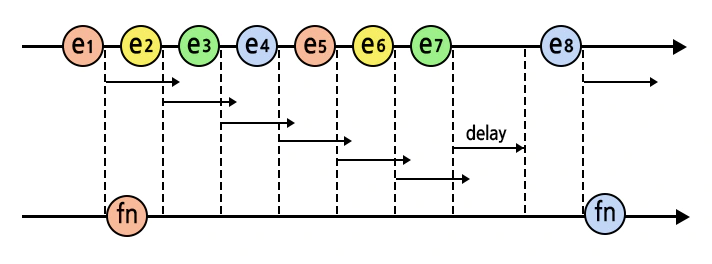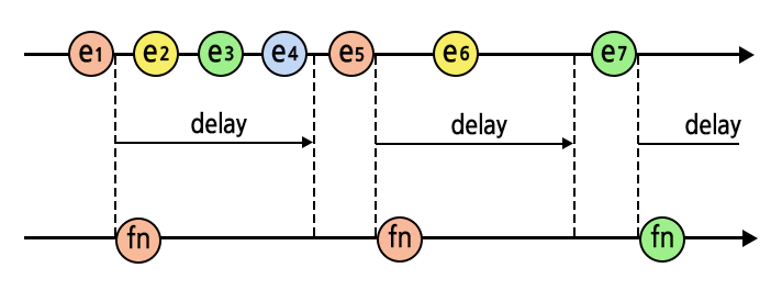 앞선 Throttle 기법과의 차이점으로는 Throttle의 경우 이벤트가 발생하는 경우 일정 시간 안에 한 번은 실행된다는 보장이 있었는데요.