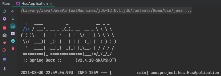 Spring Boot를 실행하면 다음과 같이 Spring>> 이라는 배너로 스프링 프로젝트가 실행되었다는 것을 알 수 있습니다.